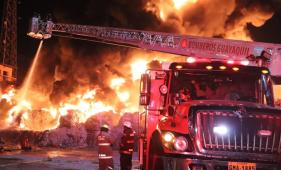 150 bomberos controlaron incendio en una fábrica en la vía a Daule