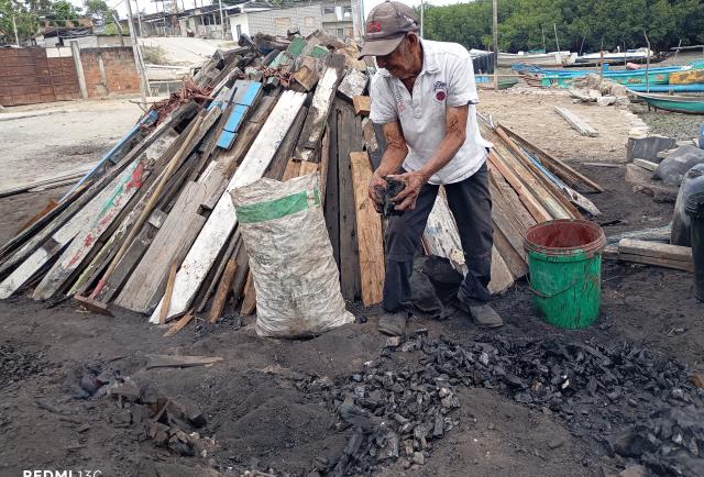 En esta comunidad pesquera y manglera, su edad causa admiración; pero lo que más desconcierta es que todavía ejerce su oficio de carbonero, el mismo que aprendió a los 13 años. “Es el único que queda del tiempo de antes. Le compro su carbón para asar liza para mi familia”, cuenta su vecino Simón Figueroa, testigo de la vitalidad del anciano.