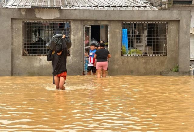 La inundación se produjo tras las fuertes lluvias registradas durante la madrugada del jueves 12, que provocaron el desbordamiento de los ríos Babahoyo y San Pablo, dejando bajo el agua a otros sectores de la capital fluminense.