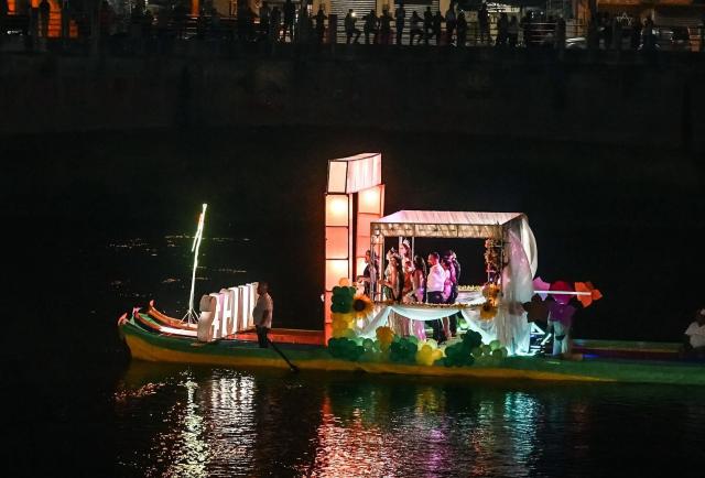 A la 20:00 el público observa desde el malecón, las riberas y puentes, mientras el río se convierte por una noche en un escenario vivo e iluminado. Para esta edición número 37 se prevé el desfile de diez góndolas, cuidadosamente decoradas y adaptadas.