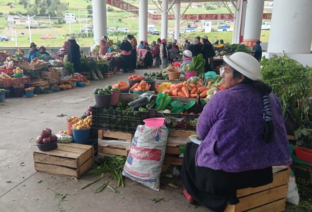Antes de las 05:00, el movimiento ya es intenso en Chibuleo, en la parroquia Juan Benigno Vela. Desde distintos puntos, los productores comienzan a llegar al Mercado Intercultural: unos en camionetas contratadas, otros en buses y varios a pie.