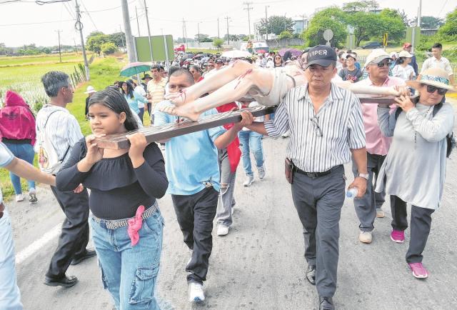 Mercy Baque Macías manifestó que el Viernes Santo es un día de reflexión en el que no se puede comer carne, ya que se recuerda la muerte de Jesucristo, quien dio su vida por todos los pecadores. “Un año más pedimos al Señor por la salud y la seguridad de nuestro país. Desde hace una década participo en esta caminata que fortalece mi fe infinita”, detalló la mujer, quien junto a su familia llegó desde Guayaquil para este acto litúrgico.