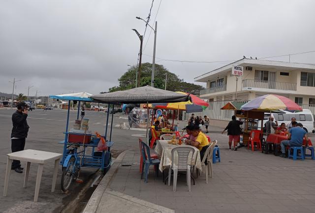 Aunque el artículo 26 de la ordenanza municipal prohíbe expresamente la venta ambulante dentro y alrededor del Malecón de Playas, la norma no se cumple. El paseo turístico luce desordenado: carretas de encebollados, ventas de ropa en locales improvisados y comerciantes que ocupan cada rincón.