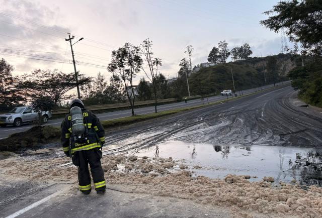Tráfico en Quito colapsa por 12 horas tras accidente de camión con brea