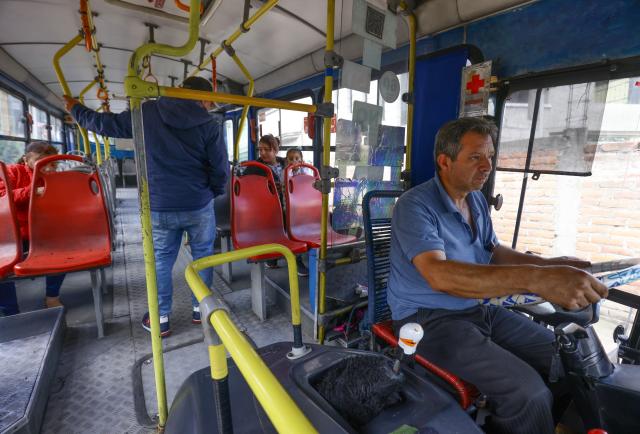 Uno a uno se acercan a los pasajeros, los amenazan con cuchillos y les quitan celulares, dinero y una computadora portátil. En medio del caos, una mujer que intenta evitar el robo de su cartera forcejea con uno de los atacantes y cae al piso, mientras el conductor continúa manejando.
