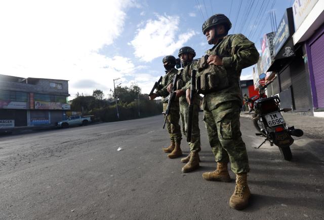El 6 de octubre, soldados de la Fuerza Terrestre se apostaron en Cutuglagua con cascos, escudos y fusiles.foto: gustavo Guamán