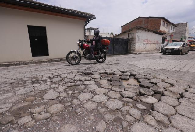 La situación se repite en la calle Guayaquil, donde se registran huecos y grietas a lo largo de una vía mixta de asfalto y adoquines. Durante un recorrido de EXPRESO se observaron montículos de tierra colocados para tapar los huecos, muchos ya llenos de agua debido a las lluvias.