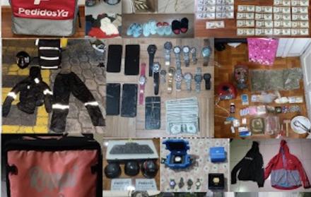 En total, la Policía incautó 34 relojes de alta gama, dos armas de fuego, 38 municiones, dos motocicletas presuntamente utilizadas para los robos, 1.630 dólares en efectivo, además de cuatro mochilas y chaquetas con logos de empresas de entregas a domicilio.