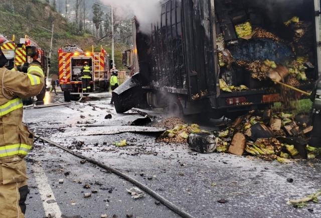 Camión se incendia en av. Simón Bolívar y causa alarma en Quito