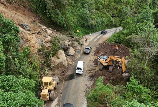 Las intensas precipitaciones han generado inestabilidad en los taludes, especialmente en el kilómetro 36, donde se registra acumulación de material pétreo sobre la calzada, lo que representa un alto riesgo para conductores y pasajeros.