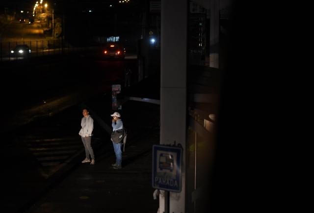 Diego Rivera, uno de los usuarios que espera una unidad, enciende de vez en cuando la linterna de su celular. Lo hace para tener más luminosidad, aunque admite que el miedo está latente. “A varios compañeros los han asaltado aquí”, dice mientras mira hacia el puente peatonal que cruza la carretera. A un costado, la maleza cubre parte de la vereda, otro motivo para mantenerse cerca del filo de la calzada, bajo el peligro constante de los autos que circulan por la E35.