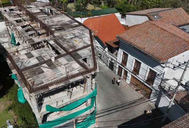Cubierta por mantos verdes rasgados y con un cartel que anuncia “Obra Suspendida. Ministerio de Cultura. Abril 2025”, así luce hoy la construcción de tres pisos en Guápulo que desató un conflicto urbanístico y patrimonial que ya supera el año.