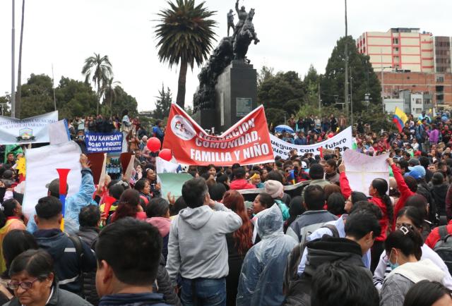 La marcha recorrió primero la calle Yaguachi, pasó por el Hospital Eugenio Espejo y llegó al sector de la Maternidad Isidro Ayora. Aunque hubo intentos para acercarse más a la Asamblea, fue imposible, pues el Palacio Legislativo se encuentra cercado y un grupo numeroso de policías custodia la zona. Sin embargo, la gente continuó con sus reclamos y colocaron parlantes en un camión, que sirvió como tarima para que dirigentes se pronuncien ante los manifestantes.