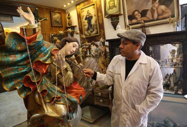 El restaurador y artista Marcelo Cuesta mantiene viva la tradición de la Escuela Quiteña
