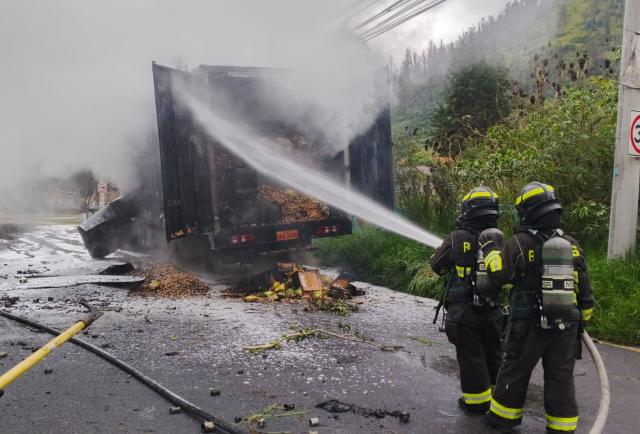 El camión se incendió en la avenida Simón Bolívar y de Los Conquistadores, en el sector de Guápulo