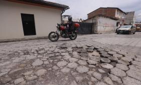 Baches, grietas y parches temporales marcan el estado de las vías en Tumbaco.
