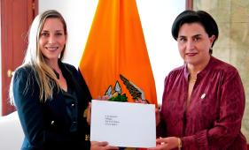 La ministra de Relaciones Exteriores de Ecuador estuvo acompañada del ministro de Producción, Alberto Jaramillo
