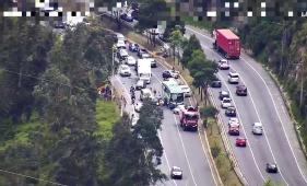 La víctima quedó atrapada por un accidente en la avenida Simón Bolívar, en el sector de Guápulo. Un carril está cerrado