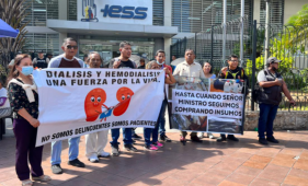 En los exteriores de la Caja del Instituto Ecuatoriano de Seguridad Social varias personas protestaron