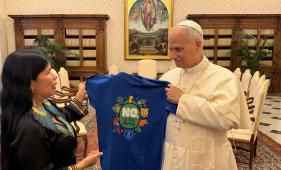 El sumo pontífice sostuvo la indumentaria entregada por la defensora indígena Paty Gualinga durante una audiencia privada