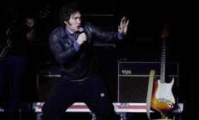 Javier Milei, presidente de Argentina, abre su concierto como un puente para la presentación de su nuevo libro