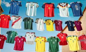 La marca alemana Adidas presentó las nuevas camisetas de las selecciones mundialistas con las distintivas tres franjas