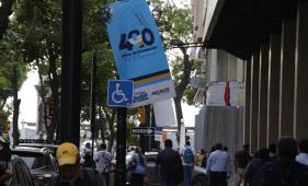 Descuido en bulevar 9 de Octubre: carteles a punto de caer ponen en riesgo a peatones