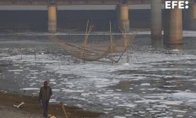 Una espuma blanca y nociva flota sobre el agua, donde devotos siguen rezando y pescadores lanzan sus redes, pese al peligro