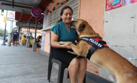 Un can se moviliza en bus para llegar al local de sus dueños, en Guayaquil La ciudad aplaude el apoyo del dueño del bus y el cuidado de la familia y el barrio