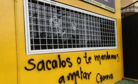 Le dejaron al dueño del negocio un mensaje amenazante en la pared del local y le rompieron los vidrios