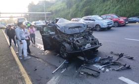 Fuerte congestión en la Autopista General Rumiñahui tras choque en sector Orquídeas. Una persona resultó herida