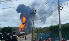 El incendio en la Refinería de Esmeraldas fue extinguido tras seis horas de trabajo con 152 bomberos