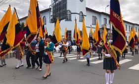 Autoridades, docentes y estudiantes participaron en el desfile cívico estudiantil que rindió homenaje a Latacunga
