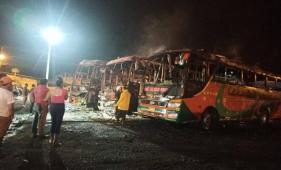 Los micros estaban estacionados cuando llegaron a prenderles fuego