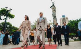 La prefecta del Guayas colocó una ofrenda floral en la Columna de los Próceres este 9 de octubre