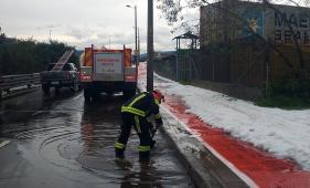 El kilómetro ocho de la Ruta Viva quedó completamente inundado por las fuertes lluvias en Quito
