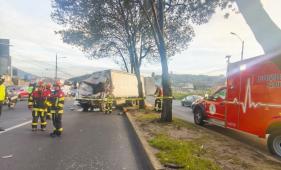 La explosión despertó a los vecinos en Mejía; el choque entre dos pesados dejó un fallecido y mantiene cerrada la vía Alóag