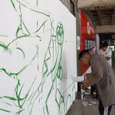 Aficionados de Liga de Quito plasmaron su arte en la general norte del estadio Rodrigo Paz como parte