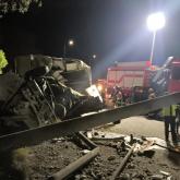 El bus se accidentó en el km 20 de la vía Alóag - Santo Domingo. Bomberos intentan remover vehículo