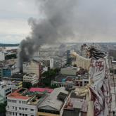 El incendio en el centro de Guayaquil, fue elevado a alarma 3 y moviliza a decenas de unidades de emergencia
