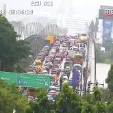 Puente de la Unidad Nacional y av. Samborondón, con caos vehicular por lluvias