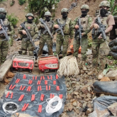 Militares desmantelan refugio de grupos armados en Tulcán: 3 detenidos, armas y un cráneo humano hallados