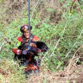 El can es un labrador de 13 años de edad, que cayó a un barranco de unos 20 metros de profundidad, tras