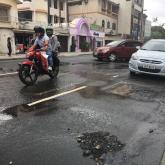 Hay baches en esa vía que se encharcan y dificultan el tránsito.
