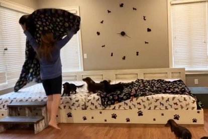 Pareja construye cama de 4 metros para poder dormir con sus 7 perros