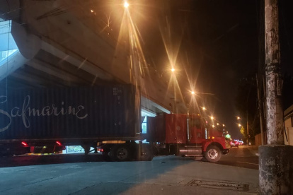 Grandes camiones ruedan por angostas calles en las noches