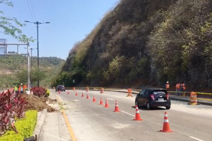 Abren carril de contraflujo por caida de piedras en cerro San Eduardo